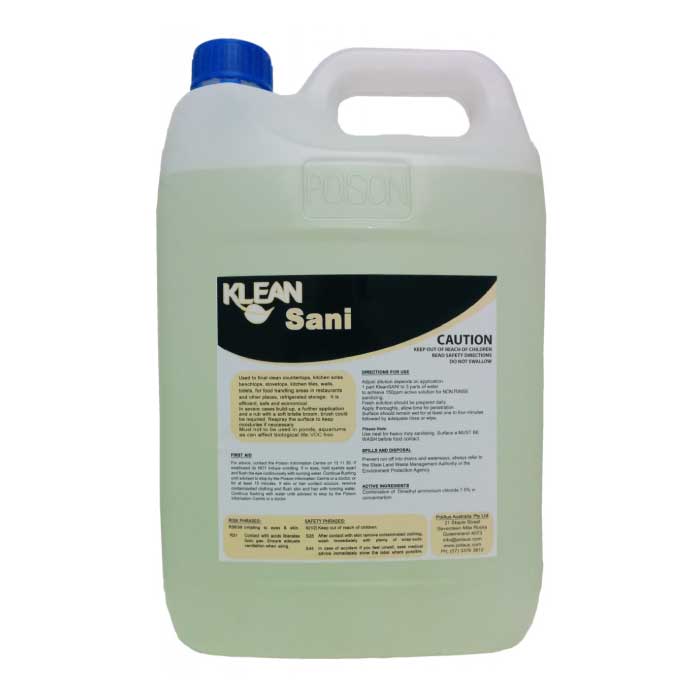 Non-chlorine Non-alcohol base, non-alkaline, quaternary ammonium sanitizer cleaner that suspends and dissolves soils for easy cleaning and removal. Fast-acting water-based formulation. Pile colourless. Mixture clean and disinfect – double the action for a single job. Have you try KleanALGAE mould, mildew, moss and algae remover for outside cleaning KleanMOULD mould, moss, mildew for internal cleaning